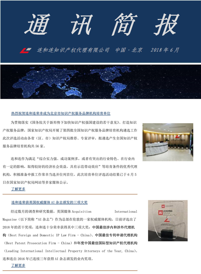 连和连荣幸入选全国知识产权服务品牌培育机构名单→http://www.lianandlien.com/article/235.html