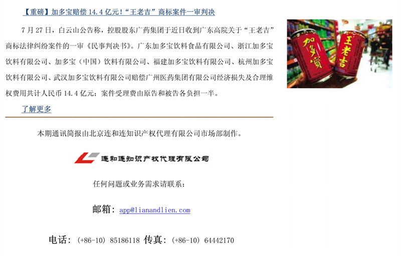【重磅】加多宝赔偿14.4亿元!“王老吉”商标案件一审判决→