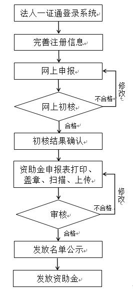 2.资助金的办理采取网上申报、网上审核、网上发放的全程网办方式,办理网址为:http://zizhu.bjzldbc.org.cn/,办理流程如下图所示: